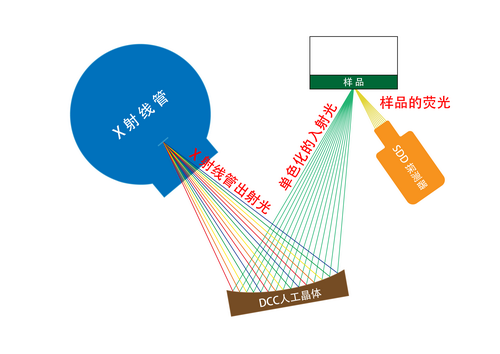 單色激發能量色散X射線熒光(Monochromatic Excitation Beam Energy Dispersive X-Ray Fluorescence)分析技術,就是采用光學器件將X射線光管出射譜單色化,進而使得熒光光譜的連續散射背景極大地降低,同時盡可能少的降低甚至于可能的話增加所需激發X射線的單色化的線或窄能量帶的強度,從而大大降低了檢出限。相比傳統的EDXRF降低了1至2個數量級,相比大功率(如4kw)的WDXRF也更低。